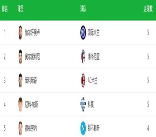 在意甲射手榜上,尼科-帕斯以5粒進球的成績,同普利希奇、恰爾汗奧盧(含2粒點球)以及奧爾索利尼(含2粒點球)并列意甲射手榜首位。