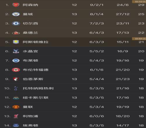 北京時間11月30日,英超第13輪先賽5場,而積分榜也因此再次發(fā)生巨大變化。