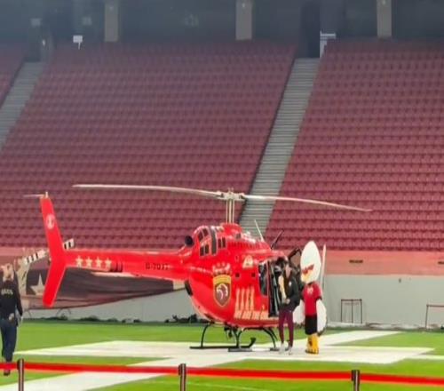 當(dāng)直升機(jī)慢慢接近,眼尖的球迷發(fā)現(xiàn),這架直升機(jī)的機(jī)身上居然印著海港隊(duì)徽(下圖)。這一幕實(shí)在震撼人心。不知道這是不是海港俱樂部專屬的直升機(jī)。俱樂部財(cái)力十足,足以讓很多囊中羞澀的中超同行羨慕不已!