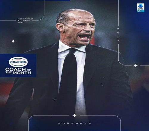 據(jù)意甲官網(wǎng)消息,米蘭主帥阿萊格里被評為聯(lián)賽11月最佳主帥。