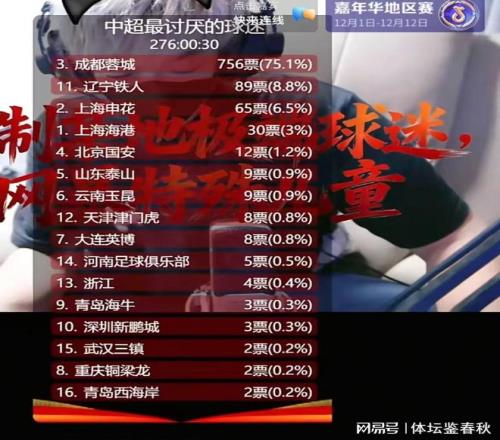 雖然2025賽季的中超聯(lián)賽已經(jīng)結(jié)束,但球迷們的熱情卻依然高漲。而近期一次看似隨意的直播投票,卻在球迷圈里掀起了不大不小的波瀾。最近,一位大連體育博主在自己的直播間里突發(fā)奇想,搞了一個“中超最不受歡迎球迷榜”的投票。本來只是聊天互動,沒想到投票結(jié)果一出來,彈幕直接炸屏了。