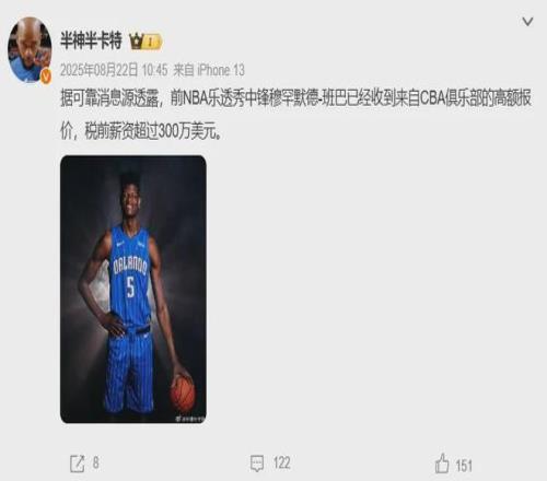 班巴在NBA之外的聯(lián)賽乃絕對(duì)的香餑餑,去年休賽期某CBA俱樂(lè)部甚至不惜報(bào)價(jià)薪資稅前超過(guò)300萬(wàn)美元,可顯而易見(jiàn)當(dāng)時(shí)他對(duì)此無(wú)動(dòng)于衷,如今就未必了。