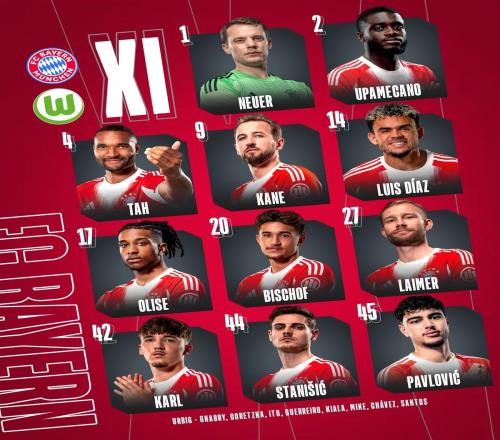 北京時(shí)間1月12日凌晨00:30,拜仁將迎來德甲第16輪主場(chǎng)對(duì)陣沃爾夫斯堡的比賽,目前,雙方的首發(fā)陣容和替補(bǔ)名單已經(jīng)...