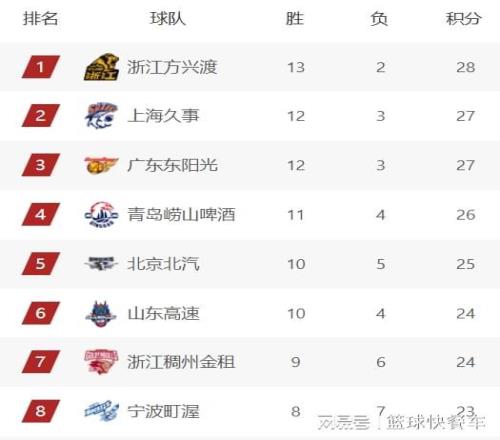 積分榜第6名則屬于山東隊,最近山東隊狀態(tài)火爆,截止到目前,他們已經(jīng)豪取8連勝,球隊的戰(zhàn)績也變成10勝4負。不過,由于少賽一輪的緣故,山東隊的排名稍微吃虧,暫時排在積分榜第6名。而排在第7名的是浙江隊,他們的戰(zhàn)績是9勝6負。積分榜第8名則屬于寧波隊,作為本賽季的黑馬之一,寧波隊目前已經(jīng)拿到了8勝7負的戰(zhàn)績,暫居積分榜第8名,這與他們上賽季的表現(xiàn)比起來,已經(jīng)提升了不止一個檔次。