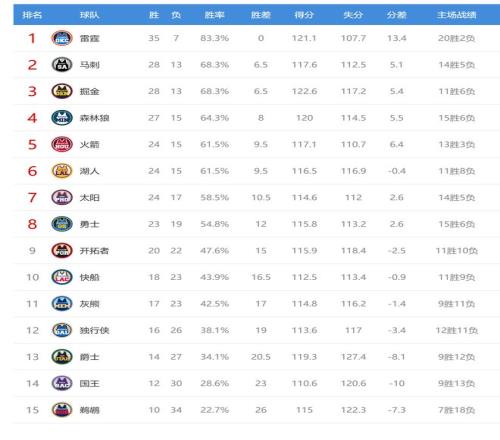 今日比賽后火箭、湖人排名互換,快船、灰熊排名互換,其他西部球隊(duì)排名不變。